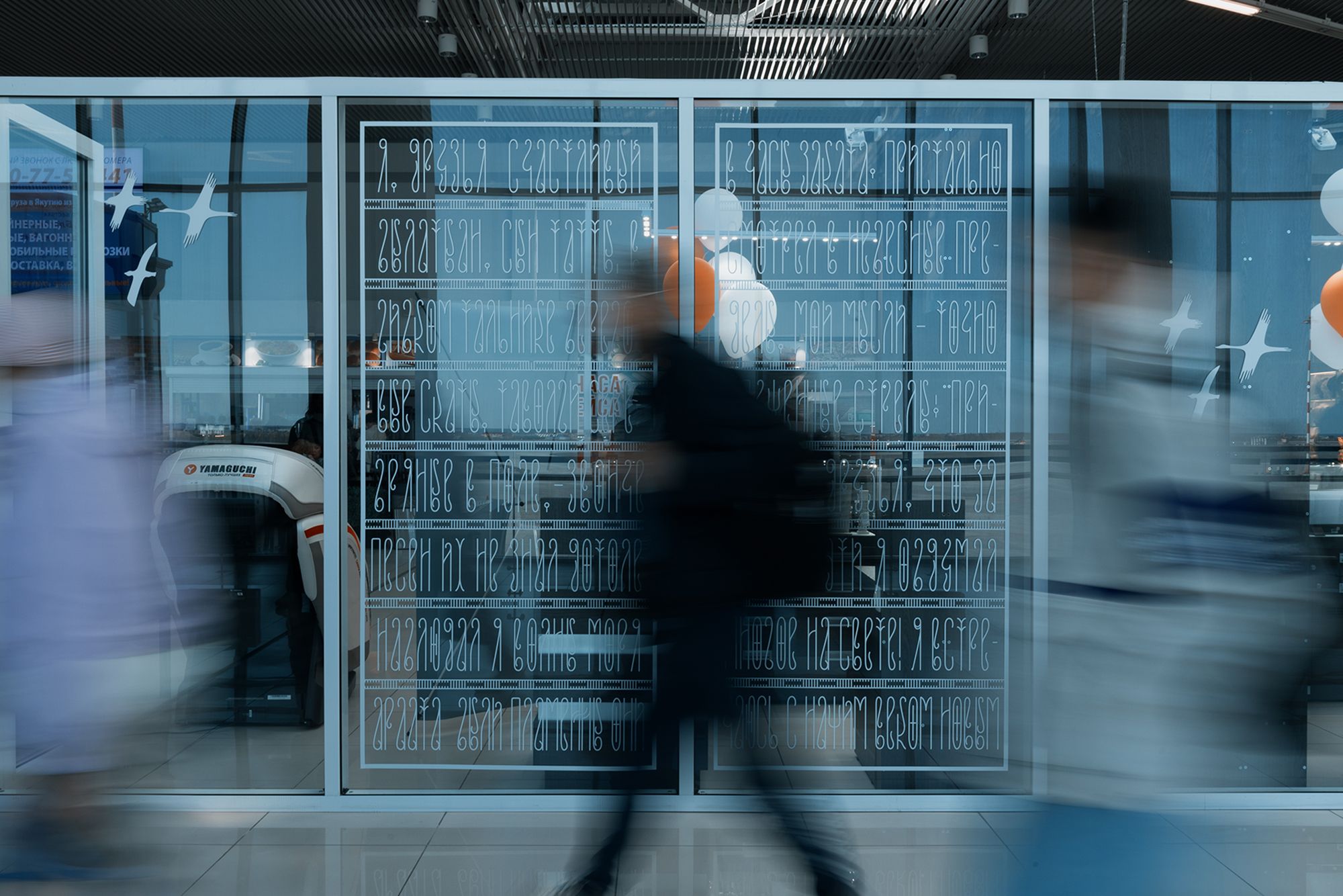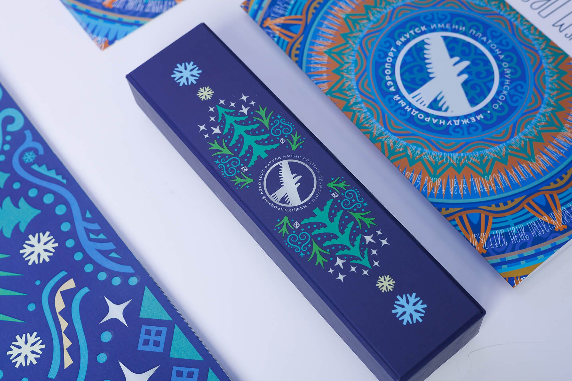 В рамках фирменного стиля был разработан фирменный шрифт "Oiunuuskai". Шрифт вдохновлен якутскими орнаментами, которыми в древние времена украшали традиционный якутский костюм. Такие узоры всегда носили защитную функцию, древние саха верили «чем сложнее узор – тем сложнее будет злым духам сделать что-то плохое». В итоге мы получили своего рода «шрифт-оберег», который защищает воздушное пространство аэропорта от всего плохого.