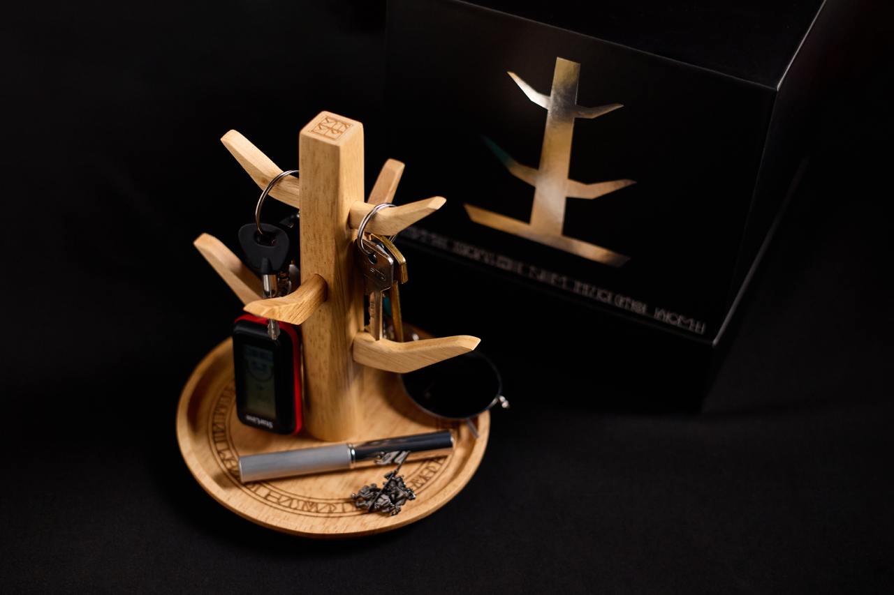 Форма ключницы повторяет священное древо «Аал лук мас» из якутских сказаний. Ключницу вручают как подарок дольщикам жилых комплексов от УТУМ+ при выдаче ключей. Таким образом можно сказать, что жизнь на новом месте начинается с благословения.